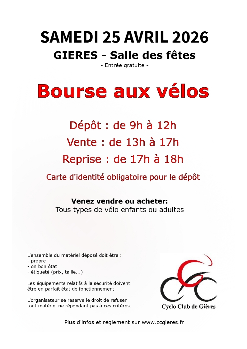 La dixième Bourse aux Vélos a eu lieu à la salle des Fêtes de Gières le 25 avril 2026